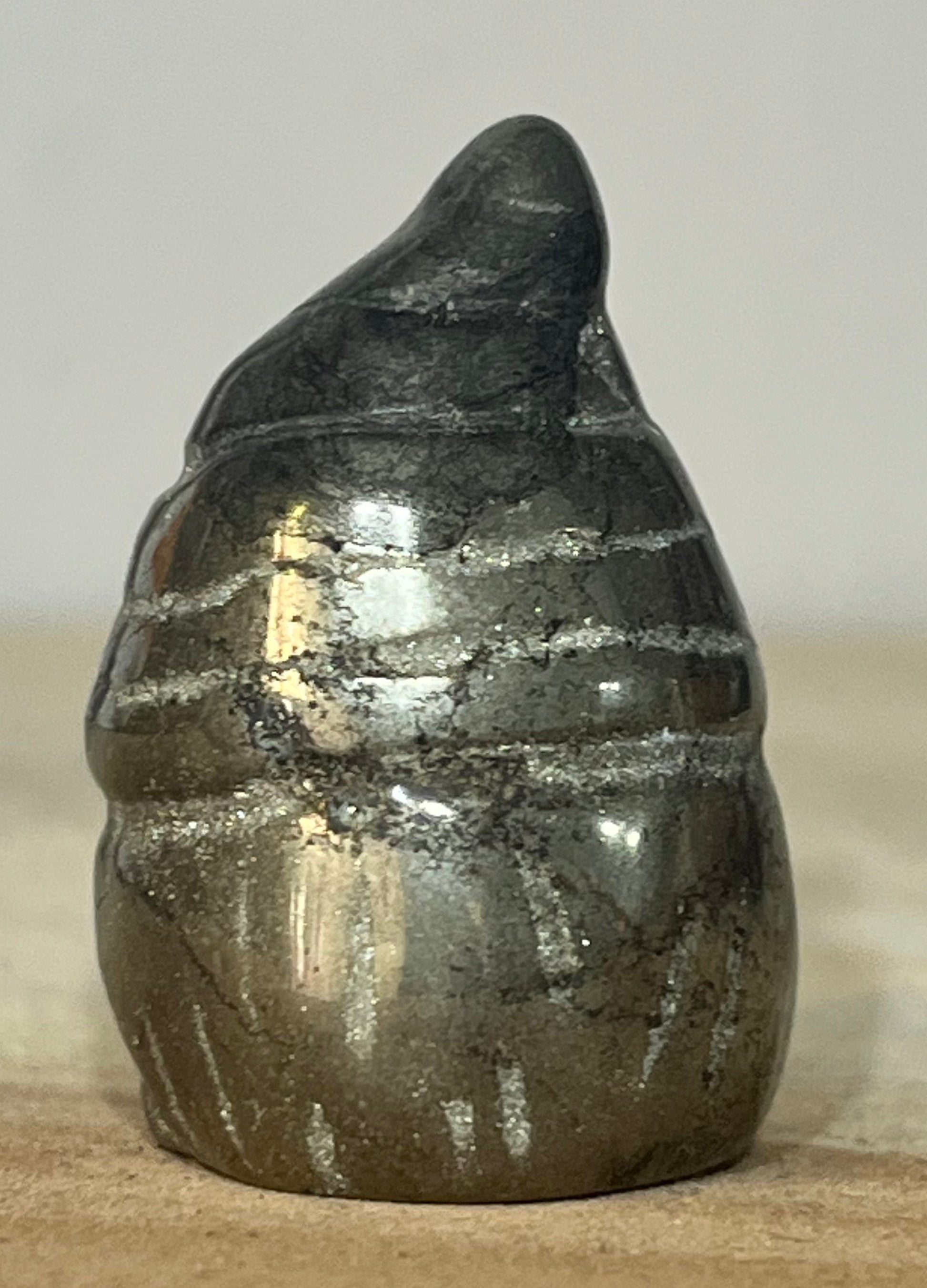 Each gnome is hand-carved from natural crystal, full of earthy metallic shimmer and grounding energy.