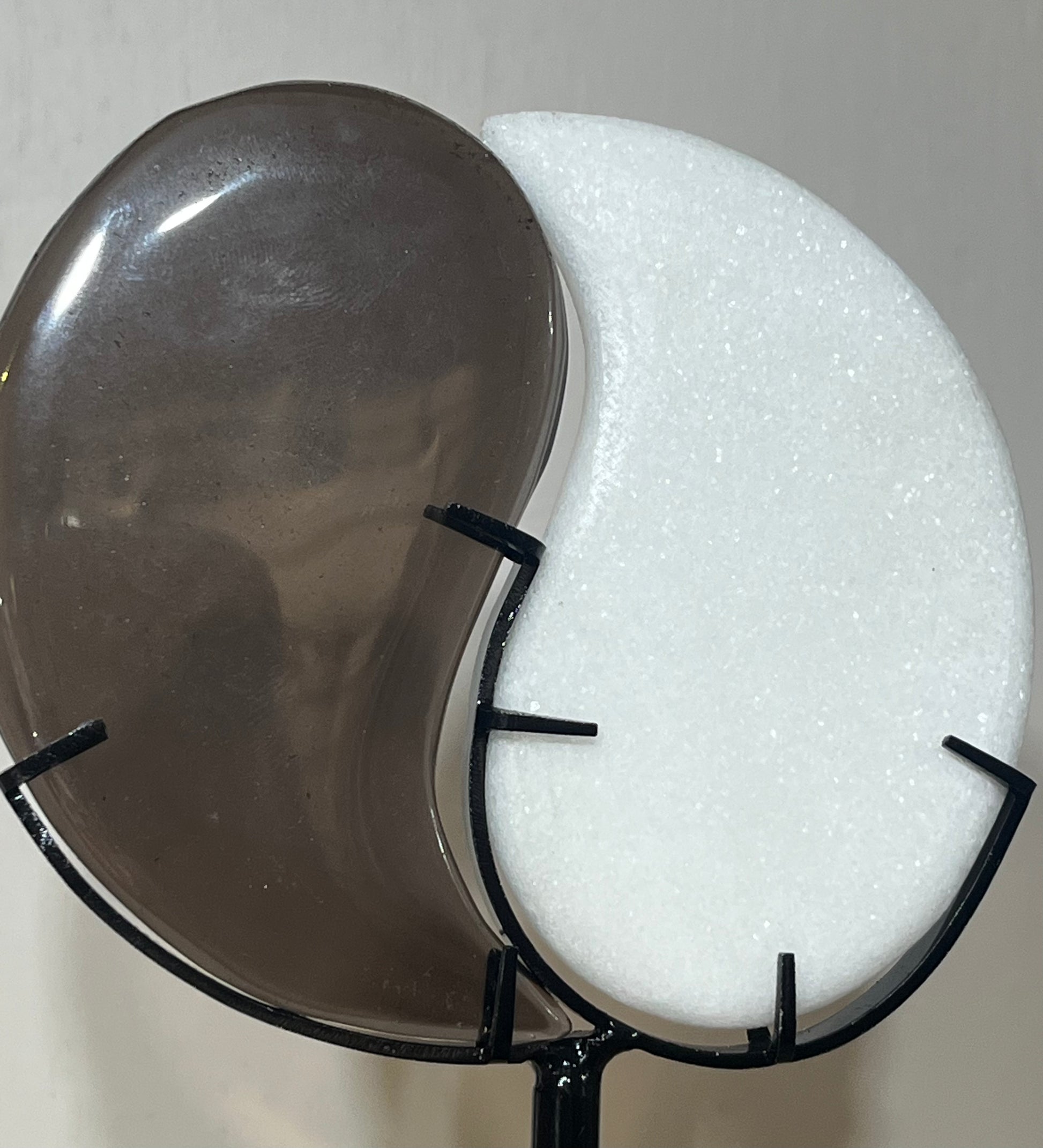 ✨ Smoky Quartz & White Jade Yin–Yang Duo on Stand – 15cm | Harmony, Balance & Protection ✨