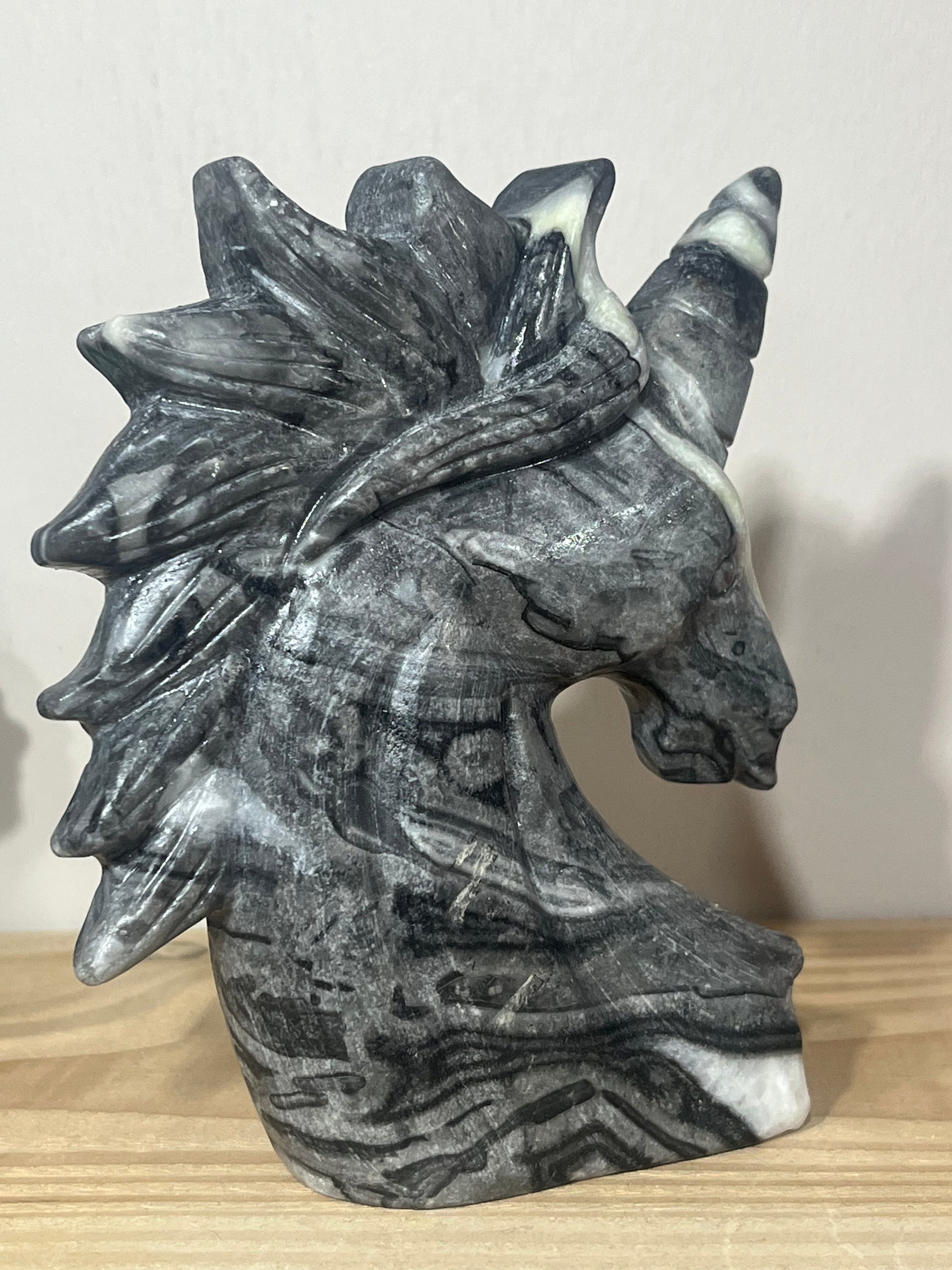 • Shape: Unicorn head carving