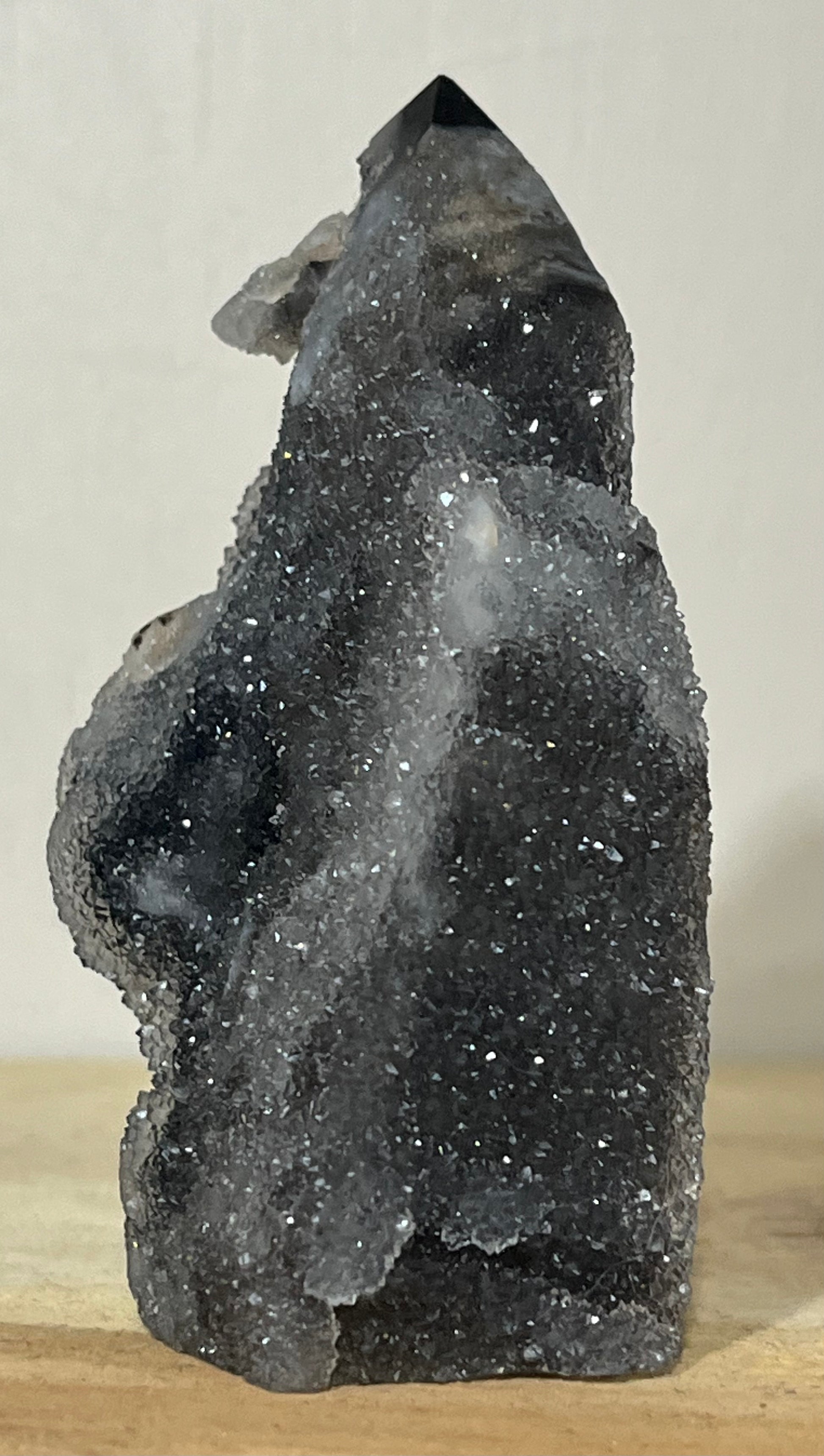 The shimmering druzy pockets amplify energy flow, while the dark mineral layers anchor you deeply to the earth. It’s the perfect piece for anyone working on emotional strength, shadow work, or grounding after spiritual shifts.