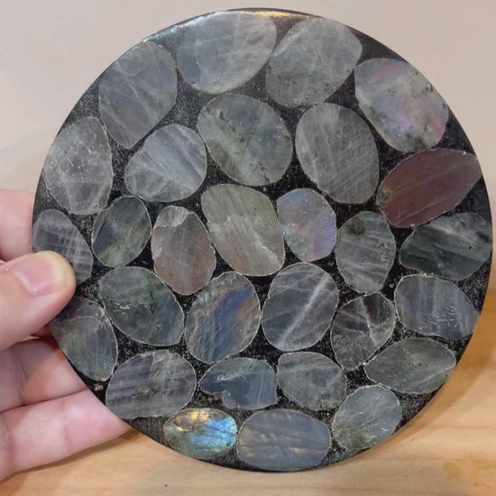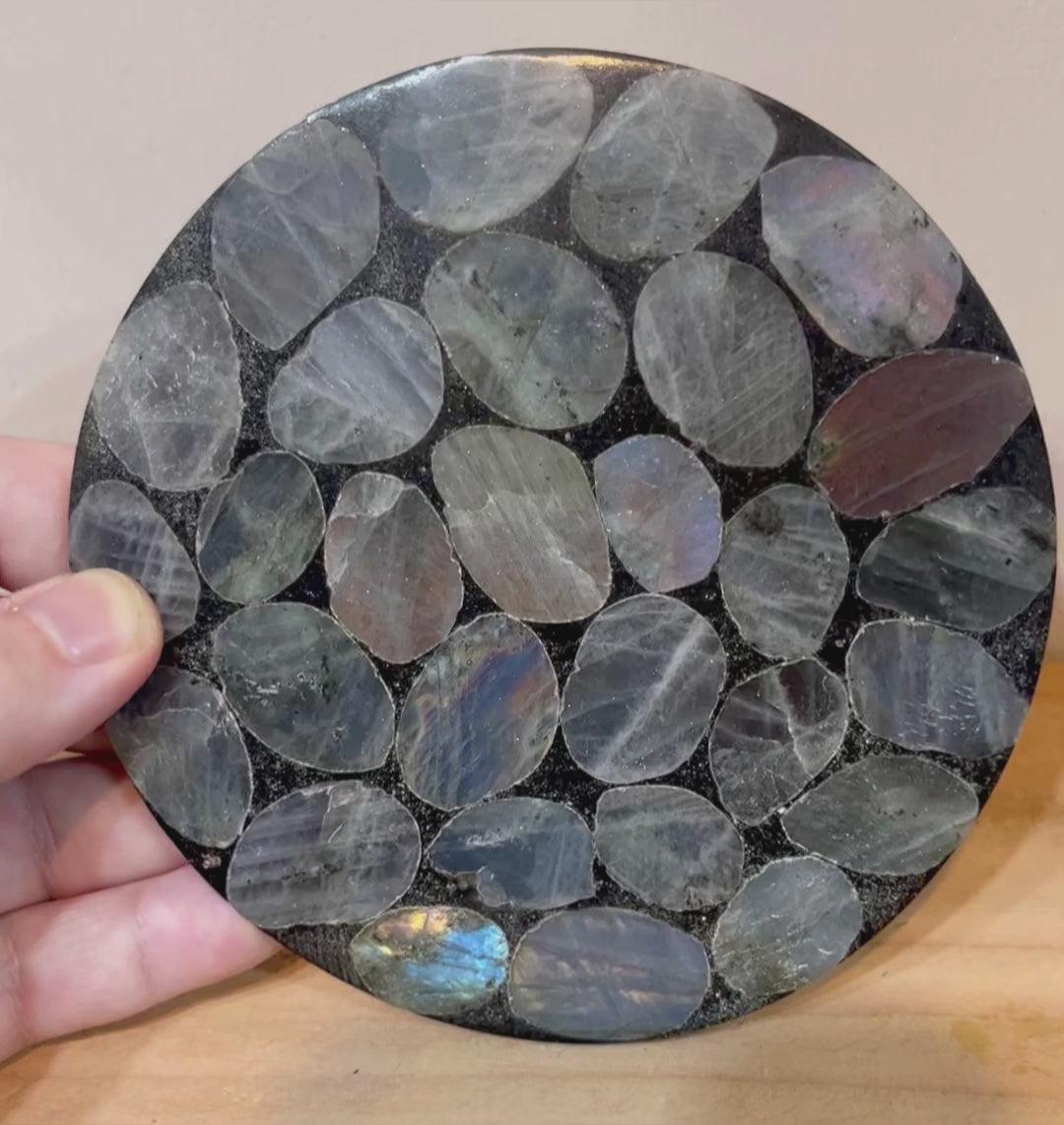 Stunning labradorite plaque , mosaic effect, amazing flashes throughout!